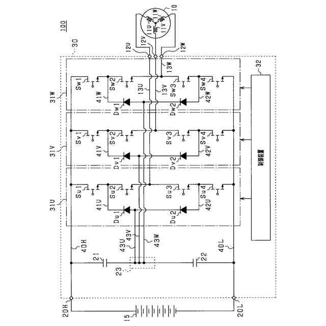 複数の前記スイッチ部として、第1スイッチ(Su1,Sv1,Sw1)、第2スイッチ(Su2,Sv2,Sw2)、第3スイッチ(Su3,Sv3,Sw3)及び第4スイッチ(Su4,Sv4,Sw4)が備えられ、