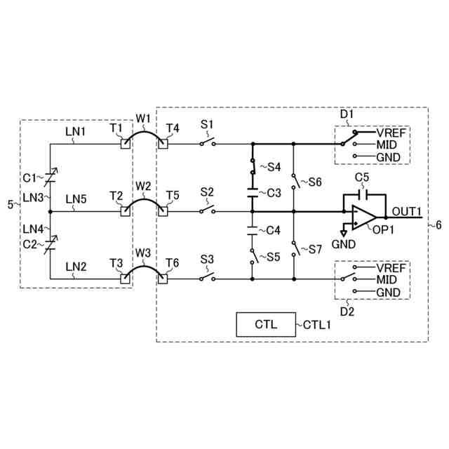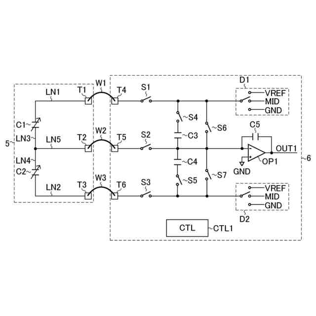前記第1スイッチと前記第1駆動回路との接続ノードに第1端が接続され、前記第2スイッチと前記検出回路との接続ノードに第2端が接続される第6スイッチと、