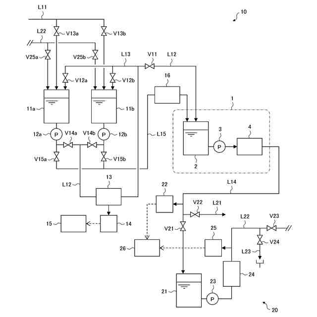 本発明の第1の実施形態に係る薬液精製システムの概略構成図である。