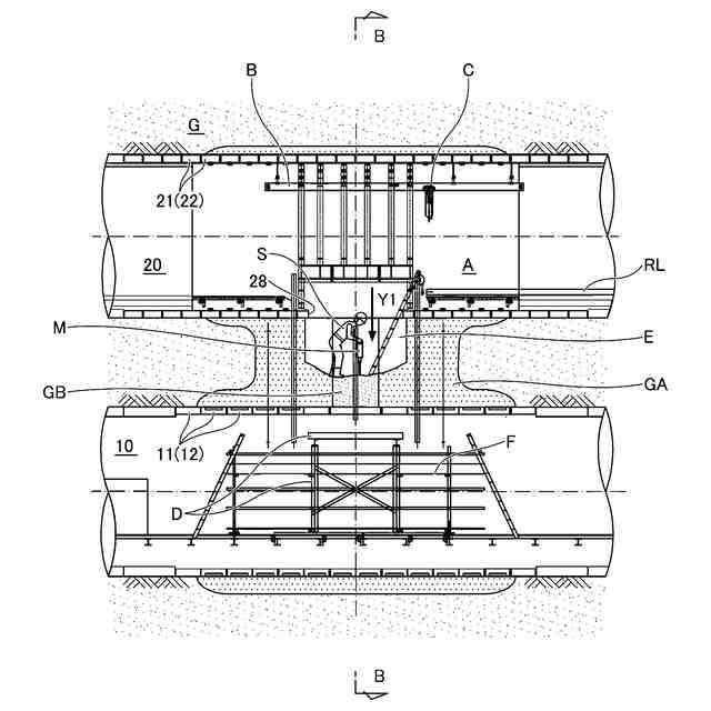 上下や左右の関係にある2つの既設の地下構造体の間を掘削して双方を繋ぐ施工において、その周囲に凍結工法や薬液注入工法、高圧噴射工法等の地盤改良による防護工を行った後に、地盤改良エリアの内側にある未改良エリアの掘削を行い、掘削後に2つの既設の地下構造体を接合する場合がある。