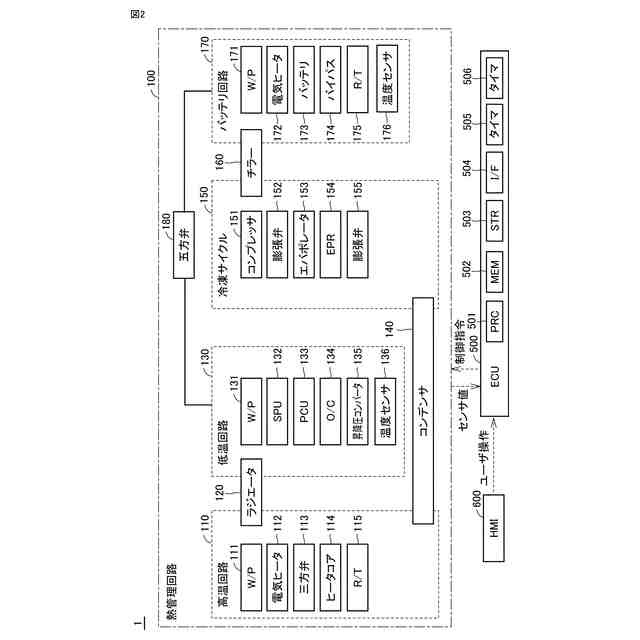 特開2023-063735号公報(特許文献1)には、PCUが接続される経路と、バッテリが接続される経路と、リザーブタンクと、冷却液の流通経路を切り替える五方弁とが設けられる冷却液回路を備える温度制御システムが開示されている。