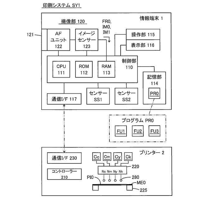【解決手段】媒体は、テストパターン、並びに、撮像部のブレを検知するための複数のブレ検知領域であって第一ブレ検知領域及び第二ブレ検知領域を含む前記複数のブレ検知領域を撮像対象領域に有している。前記第一ブレ検知領域と前記第二ブレ検知領域とは、互いに、前記撮像対象領域の中心を通る直線と、前記テストパターンと、の少なくとも一方を挟む位置にある。制御部は、撮像部から前記撮像対象領域の画像を取得し、前記画像に含まれる前記第一ブレ検知領域にブレがあるか否か、及び、前記画像に含まれる前記第二ブレ検知領域にブレがあるか否かを検知し、前記第一ブレ検知領域と前記第二ブレ検知領域の両方にブレがないと検知すると前記画像に含まれる前記テストパターンにブレがないと判定する。