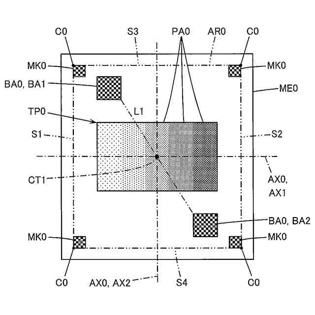 前記複数のテストパターンは、前記第一ブレ検知領域と前記第二ブレ検知領域との間にある第一テストパターン、及び、前記第二ブレ検知領域と前記第三ブレ検知領域との間にある第二テストパターンを含み、