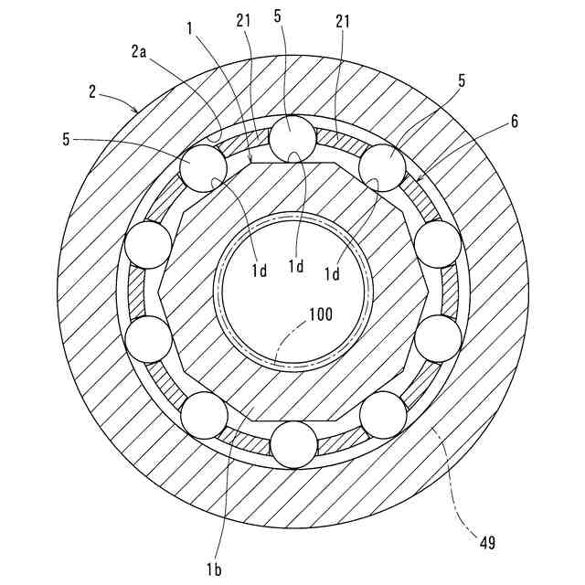 特許文献1の回転伝達装置の場合、保持器は、カムリング部と内方の軌道輪との間に断面L字形の鍔部を有する。カムリング部は、保持器の鍔部を軸方向に受ける規制面と、その鍔部を径方向に受ける保持器座面と、内方の軌道輪を軸方向に受ける肩端面とを有する。保持器の鍔部は、その断面L字形の軸方向辺部の先端に位置する板厚面において内方の軌道輪に軸方向に突き合う。保持器は、保持器座面で径方向に位置決めされ、カムリング部の規制面と内方の軌道輪とで軸方向に挟まれている。