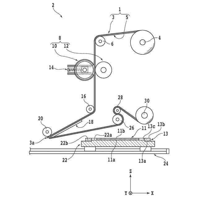 被加工物等の基板に接触する配設面にゴミや埃等が付着しないように、糊層を備えない樹脂シートの配設面には保護シート(剥離シート、離形シート)が配設されることがある。そして、基板に貼着する直前に樹脂シートから保護シートが剥離され、樹脂シートが基板に配設される。