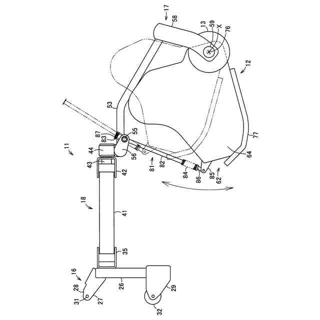 すなわち例えば、作業面が走行面よりも高い場合には作業部が前傾姿勢となり、逆に、作業面が走行面よりも低い場合には作業部が後傾姿勢となる。
