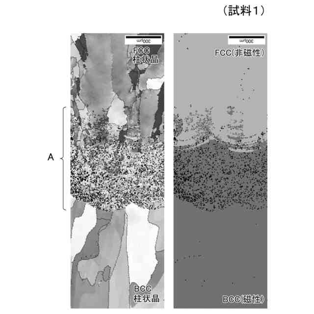 いずれの文献にも、軟磁性部(強磁性部)と非磁性部の境界付近における磁気特性、成分組成、金属組織等に着眼していない。また、軟磁性部と非磁性部の境界付近を、それらと異なる成分組成の粉末で積層造形することは、いずれの文献にも記載がない。