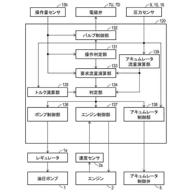 このように、特許文献1に記載の技術では、アキュムレータと油圧ポンプによる油圧アクチュエータへの作動油の供給分担が不連続的に変わる。このため、油圧アクチュエータも不連続的に動作することになり、作業機械のオペレータに違和感を与えてしまったり、油圧シリンダにより駆動される駆動対象部材の位置決めを精度よく行うことができなくなってしまったりするおそれがある。このため、アキュムレータと油圧ポンプによる油圧アクチュエータへの作動油の供給分担が変わるときに、油圧アクチュエータへの作動油の供給流量の連続性を確保可能な技術が要望されている。