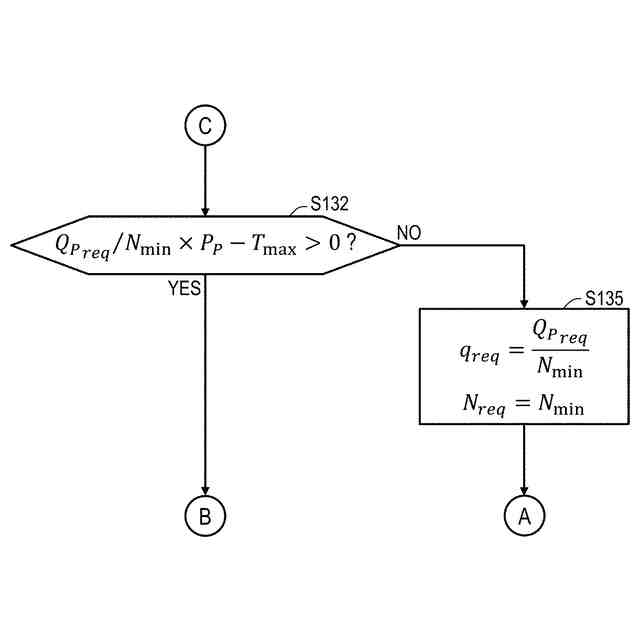 前記許容トルク特性線と前記ポンプトルク特性線とが交差しないと判定された場合には、設定されている前記モードを判定し、