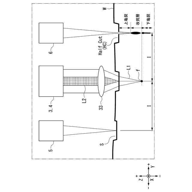 ここで、例えば変位センサなどの検出器を加工進行方向の前方に配置した場合は、ウェーハの表面高さ位置をウェーハの加工前に検出することができる。したがって、ウェーハ表面の凹凸を事前に検出し、検出結果をAF用レーザー光による高さ位置検出に利用することで、AF用レーザー光を検出する検出器の応答の遅れを低減することができる。しかしながら、この場合はウェーハの加工を行うタイミングでウェーハ表面の高さ位置の検出を行っていないため、当該事前のウェーハ表面の検出からウェーハ加工タイミングまでの間にウェーハの状態等が変化した場合、当該変化に対応してウェーハを加工することが困難である。