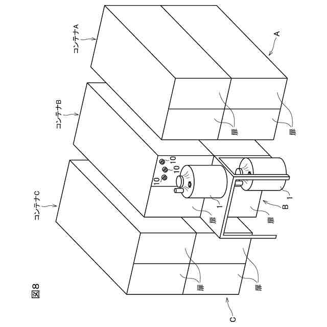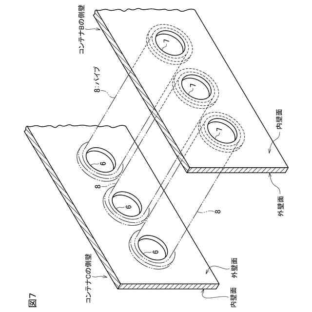 [2] 前記コンテナ(C)の側面と、該コンテナ(C)の該側面と対面するコンテナ(B)の側面とにそれぞれ配管挿通用の開口が設けられており、
