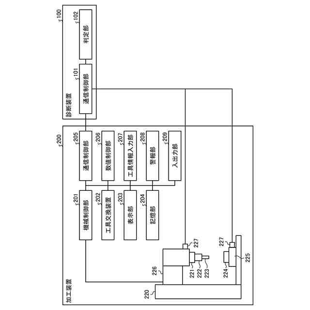 図1は、第1の実施の形態にかかる診断装置を適用した加工システムの構成例を示すブロック図である。図1に示すように、本実施の形態にかかる加工システムは、加工装置200と、診断装置100と、を含む。