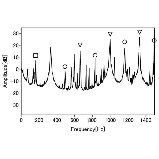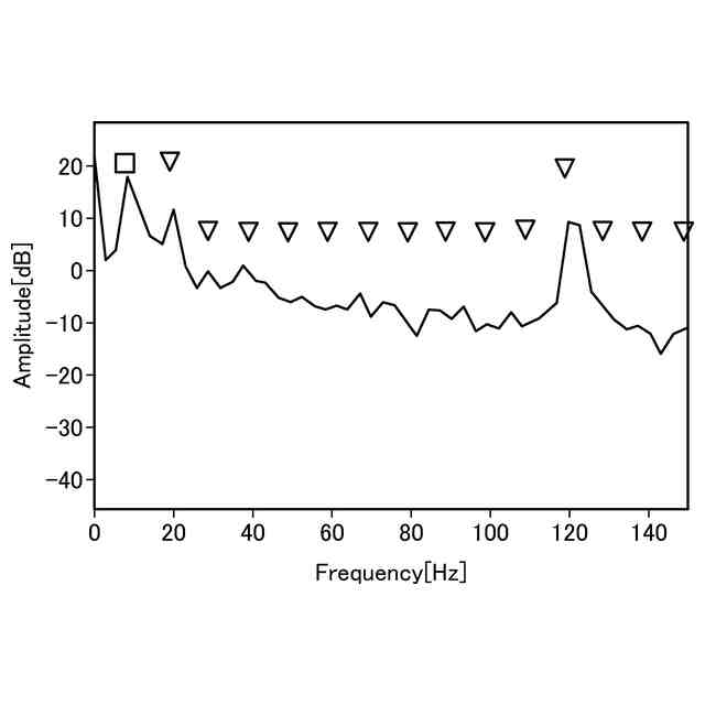 図8は、断続切削チッピング無しの場合の診断装置の周波数解析部による周波数解析により求めた平均スペクトルの一例を示す図である。