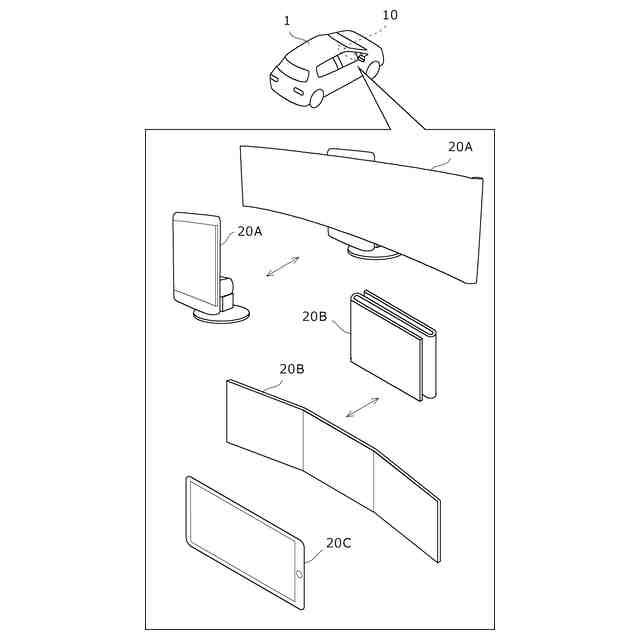 図1に示す表示装置20Aは、引き出し及び巻き取りが可能なロール式のフレキシブルディスプレイである。表示装置20Aは、例えば吸盤によりダッシュボードに固定できるものとする。また、表示装置20Aは、太陽光の反射等により視認性が低下することを抑制するため、曲率半径が1000mmから4000mm程度であることが好ましく、1000mm程度であることがより好ましい。
