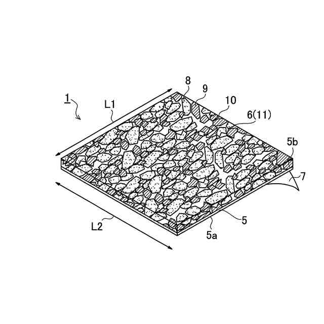 特許文献2に示されたマット型アスファルト混合物舗装補修材の場合、加熱混練されたアスファルト混合物の表面に更に骨材を撒布することで、車両が走行した際に加わる荷重によっても破壊や破断等のない柔軟性や弾性を有し、かつ、撒布された骨材によって補修材自体の変形を防ぎ、かつ、車両のタイヤに対する適度な摩擦を生じさせることで、雨天時等の雨水が補修材の上に溜まった状態でも、タイヤのグリップ力を発揮させ、安定した車両の走行を可能とすることができる。