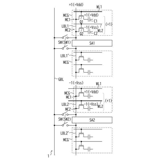 CIMで内積を演算する場合、内積の演算結果は、例えばビット線を流れる電流又はビット線の電圧で検出できる。CIMの消費電力を削減する観点では、ビット線を流れる電流又はビット線の電圧の平均値をできるだけ小さくするのが望ましい。