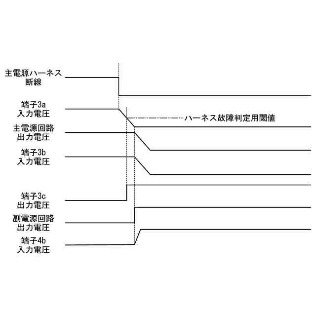 本発明の一実施形態における無線電池監視装置にて、主電源ハーネスが断線した場合の電圧変化を説明するためのグラフである。