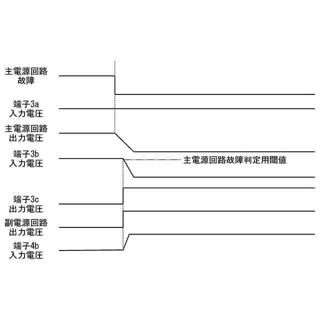 本発明の一実施形態における無線電池監視装置にて、主電源回路が故障した場合の電圧変化を説明するためのグラフである。