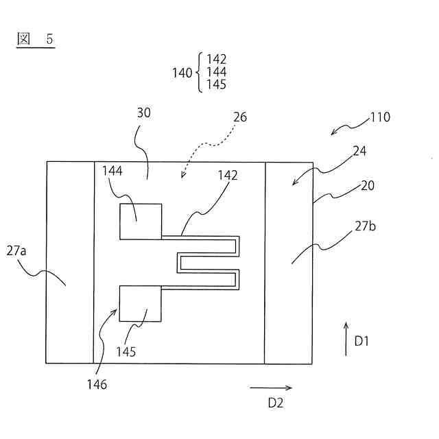 また、たとえば、前記導電膜パターンは、平面視で矩形波形状またはミアンダ形状のパターン部分を有してもよく、