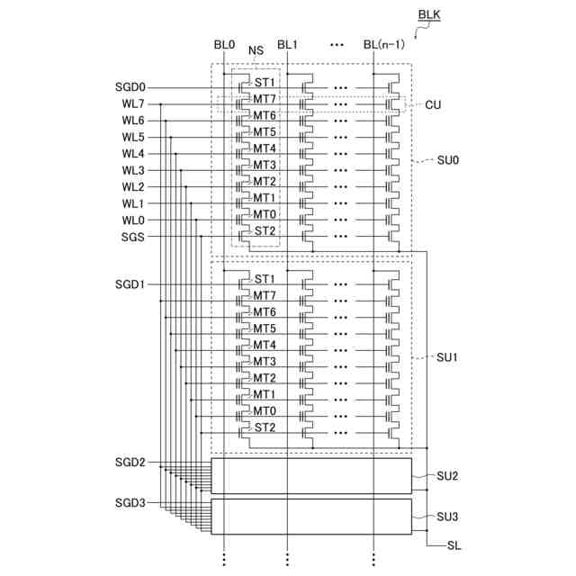 データを不揮発に記憶することが可能な半導体記憶装置として、NAND型フラッシュメモリが知られる。NAND型フラッシュメモリにおいては、高集積化及び大容量化のために3次元のメモリ構造が採用される。