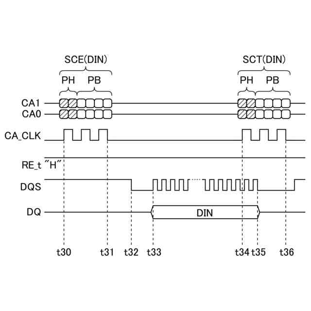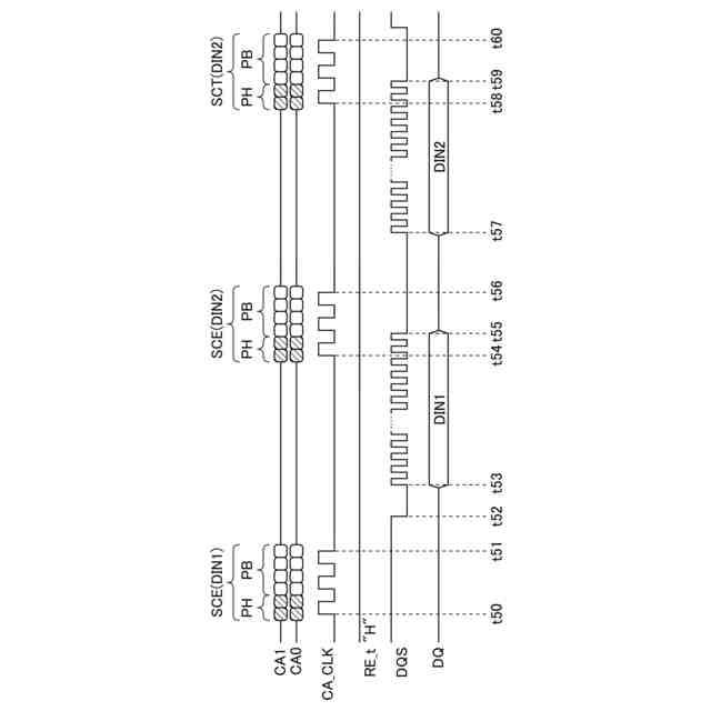 第1実施形態に係るメモリシステムにおけるコマンド及びアドレスの入力動作のシーケンスの一例を示す図。