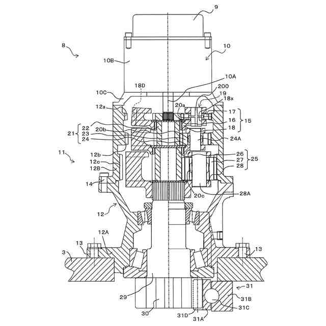 前記ハウジング内に上・下複数段に設けられ、旋回モータの回転を減速する遊星歯車機構と、