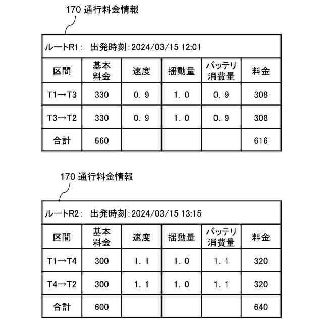 通行料金情報のデータ構造の一例を示す図である。