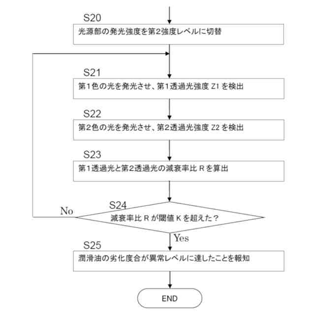 潤滑油の劣化度合の検出手法としては、特許文献1に開示された赤外線を用いる手法の他、例えば、可視光が潤滑油を透過するようにし、この透過光の強度に基づいて劣化度合を検出する手法が考えられる。この手法によれば、劣化に伴って潤滑油の色が変化することを利用し、比較的簡易な構成で効果的に劣化度合を検出することが可能である。