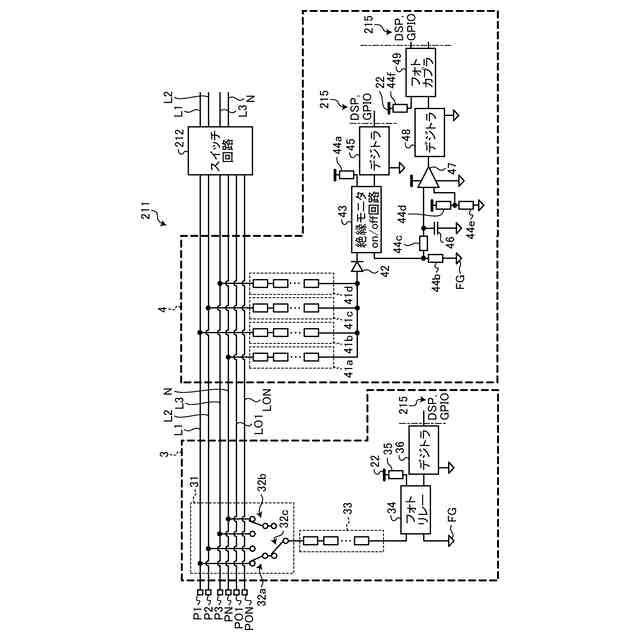 前記リレー回路は、前記第1制限抵抗を、前記4線の電源ラインのうちのいずれか1線に電気的に接続する3つのC接点リレーを有する、
