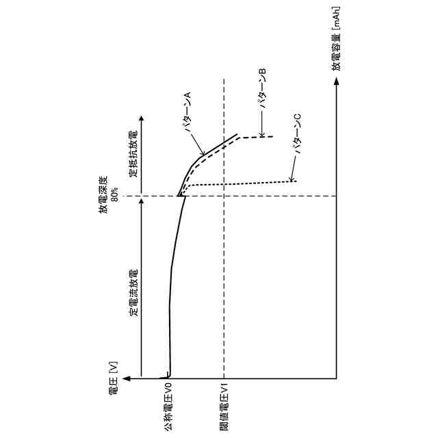 放電容量と電圧との関係の例について説明する図である。