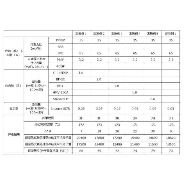 さらに、特許文献7には2-フェニル-3,3-ビス(p-ヒドロキシフェニル)フタルイミジンを構成単位とするポリカーボネート樹脂が、電子写真感光体のバインダー樹脂として耐摩耗性に優れる旨が記載されている。しかしながら、本発明者らの検討によれば、2-フェニル-3,3-ビス(p-ヒドロキシフェニル)フタルイミジンを構成単位とするポリカーボネート樹脂は湿熱環境下における樹脂の劣化が顕著であることが見出された。したがって、2-フェニル-3,3-ビス(p-ヒドロキシフェニル)フタルイミジンを構成単位とするポリカーボネート樹脂組成物において、表面硬度、耐熱性、色相および耐湿熱性が良好なポリカーボネート樹脂組成物はこれまでに報告されていない。
