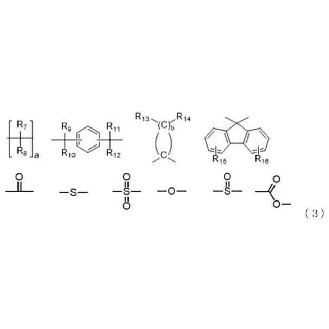 はそれぞれ独立して水素原子、ハロゲン原子、または炭素原子数1~3のアルキル基を表し、оおよびpはそれぞれ独立して1~4の整数を表し、Xは単結合または下記式(3)からなる群より選択される少なくとも1種の基である。)