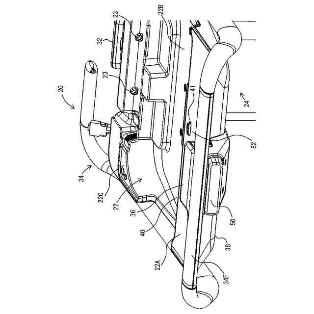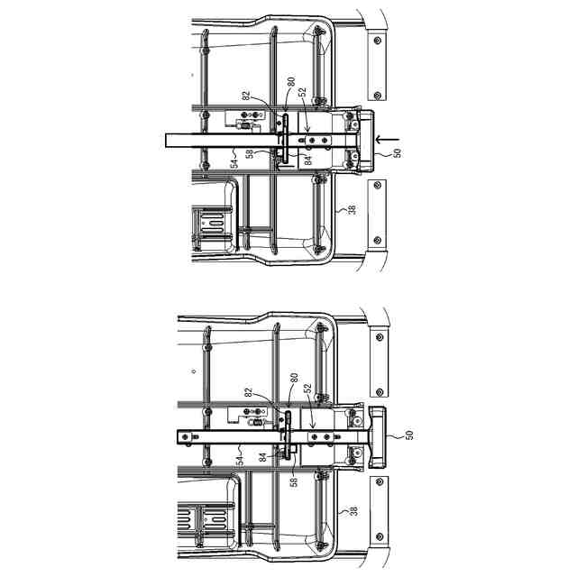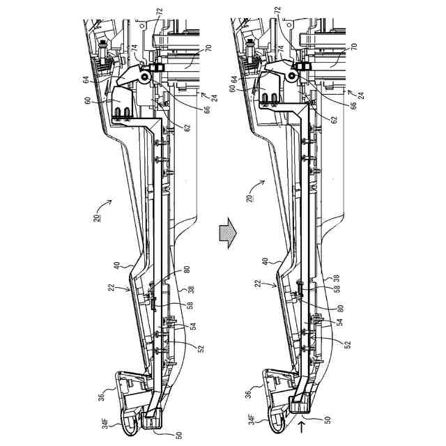 前記運動伝達機構は、前記ユーザ押しボタンの押下による前記並進運動部品の前方に向かう運動を、下方に向かう運動に変換して前記ガススプリング・ボタンに伝える運動方向変更機構を含む、