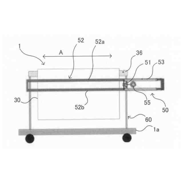 図3に示すように、インクジェットプリンタ1は、画像形成部2と、シート搬送部3と、ロール紙収容部4と、切断部としてのシート切断装置5と、制御部80とを含んで構成されている。これらのうち、シート切断装置5以外は装置本体1aの内部に配置されており、シート切断装置5は装置本体1aの外部に配置されている。