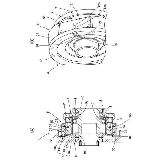 【解決手段】波動歯車装置1では、クロスローラベアリング5(支持ベアリング)の外輪51の円形外周面54の一部をDカットして形成した平坦な基板取り付け面55に、歪ゲージ式のトルクセンサ10の通信用基板12が取り付けられる。外輪51の設置スペースの外周側の一部を通信用基板12の設置スペースとして利用する。装置寸法の増加を招くことなく、通信用基板12を波動歯車装置1に組み付けることができる。装置内部に通信用基板12を組み込む場合とは異なり、通信用基板12が高温環境、潤滑剤に晒されることがないので、トルクセンサ10の寿命を確保できる。