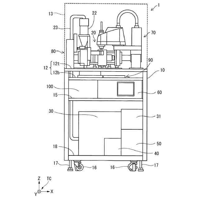 基台B2に型厚調整機構が取り付けられている場合の射出成形装置20の一例を示す斜視図である。