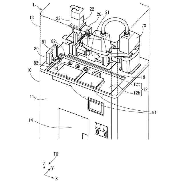 金型21を開いている型開状態の射出成形装置20の側面図である。