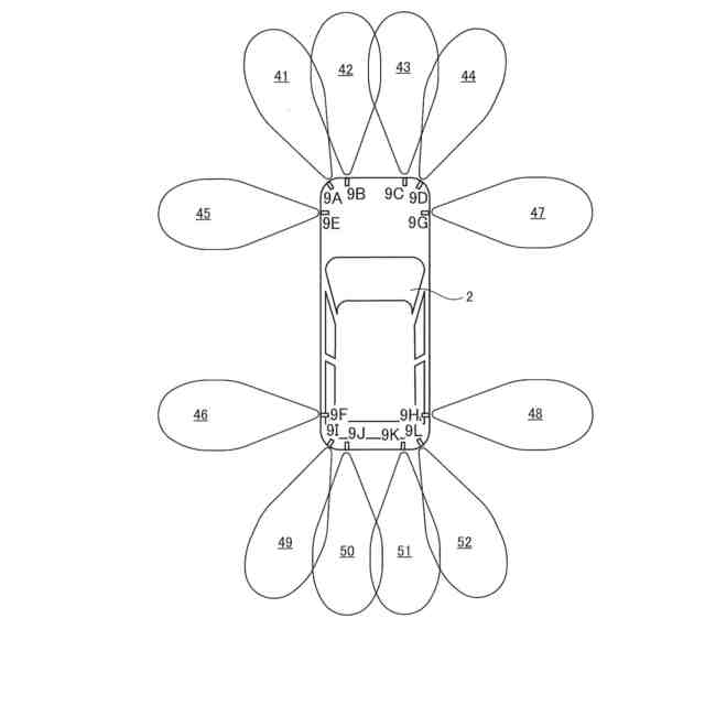 車両の側面に対する超音波センサの配置例を示した図である。