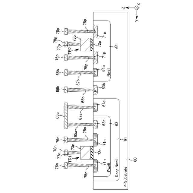 第1の実施形態のメモリデバイスの電圧生成回路の素子の構造例を示す断面図。
