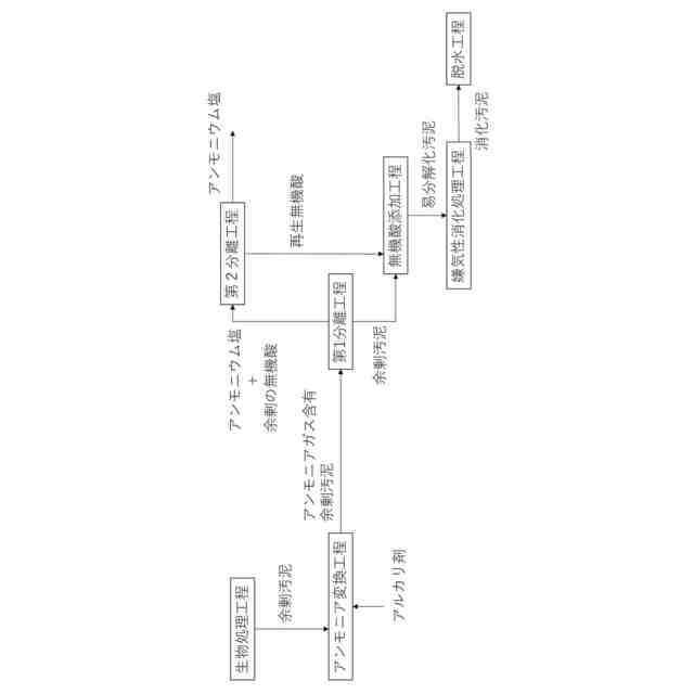 アンモニアガスを含む余剰汚泥を導入し、無機酸と接触させてアンモニウム塩を生成させ、アンモニウム塩が除去された余剰汚泥を形成する第1分離装置と、
