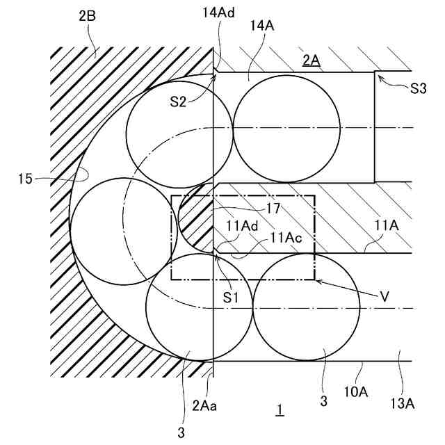 少なくとも前記第1軌道面と前記第2軌道面の表面層は、残留オーステナイト量が20%以上である、ことを特徴とする。