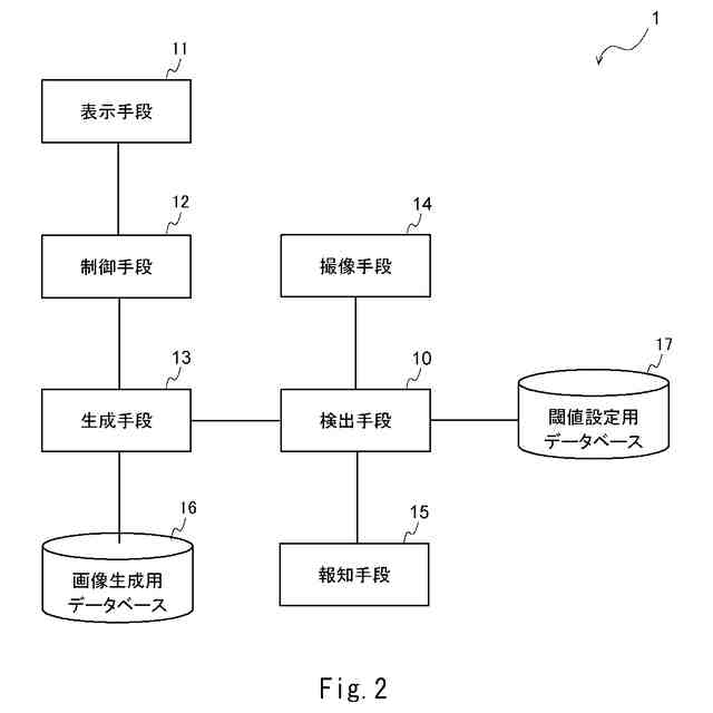生成画像情報に応じて前記表示手段において表示された画像を撮像することにより撮像画像情報を取得し、