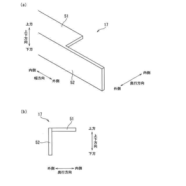 図中の(a)は、チャンネルベース11を、幅方向の一方、奥行方向の一方、及び上下方向の上方から見た状態を示している。図中の(b)は、チャンネルベース11を、幅方向の他方、奥行方向の一方、及び上下方向の下方から見た状態を示している。チャンネルベース11は、一対の据付フレーム16と、一対の連結フレーム17と、を備えている。一対の据付フレーム16は、奥行方向に延び、幅方向に離れて平行に並んでいる。一対の連結フレーム17は、幅方向に延び、奥行方向に離れて平行に並んでいる。チャンネルベース11は、一対の据付フレーム16、及び一対の連結フレーム17における互いの端部同士を連結したロ字状の枠体である。