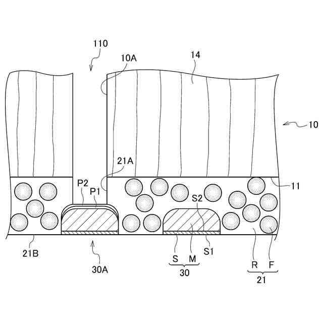 前記樹脂層の前記第1の樹脂領域と前記第2の樹脂領域は、前記第3の樹脂領域を介して互いに連結されている、