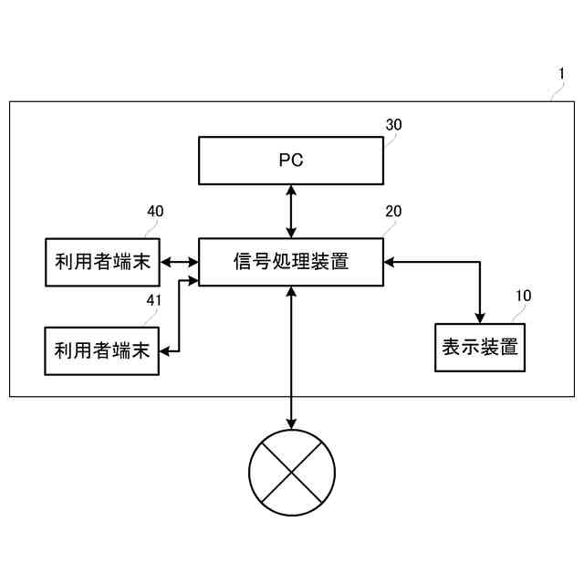 図1は、本実施形態の音声会議システム1の構成を示すブロック図である。音声会議システム1は、表示装置10、信号処理装置20、パーソナルコンピュータ(PC)30、利用者端末40、および利用者端末41を備える。信号処理装置20は、本発明の音声処理装置に対応し、表示装置10、PC30、利用者端末40、利用者端末41に接続される。信号処理装置20は、ネットワークを介して遠隔地のPCに接続される。なお、利用者端末40、利用者端末41、およびPC30は、ネットワーク経由で、信号処理装置20につながってもよい。
