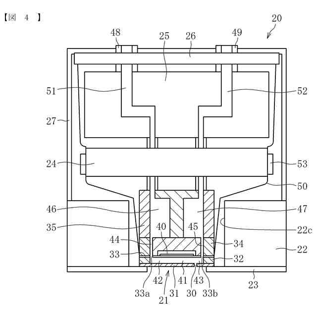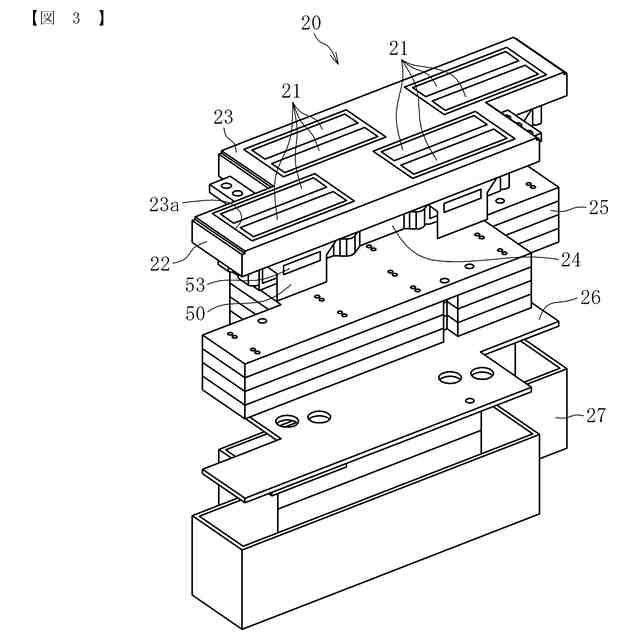 図3に示される液滴吐出ヘッドの短手方向の断面図である。