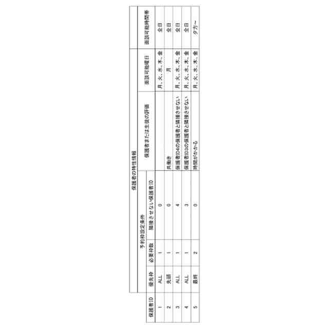 従来、学校の先生が保護者との面談を行う場合、面談の日時を全ての保護者と調整する必要がある。一般的には、全ての保護者から希望日のアンケートを取り、学校側で希望日時に沿うようスケジュールを組むことが行われる。