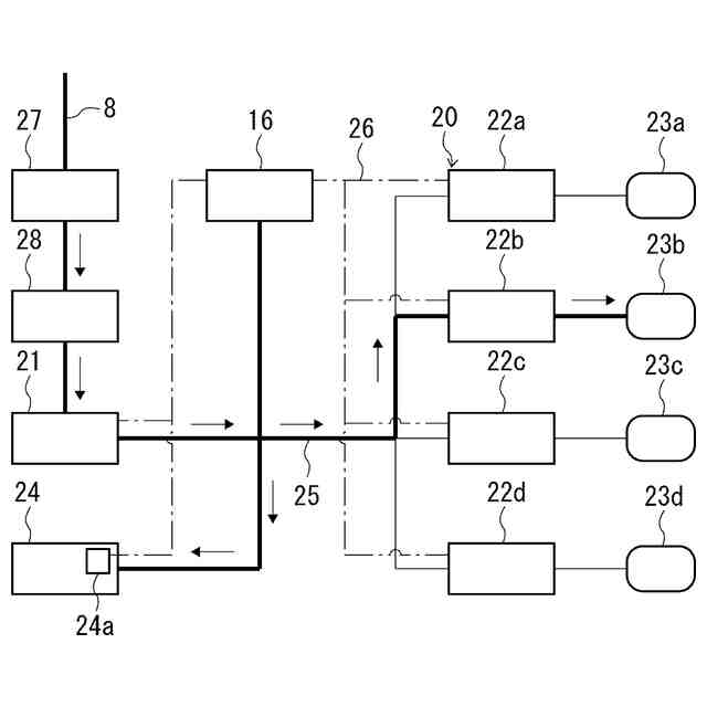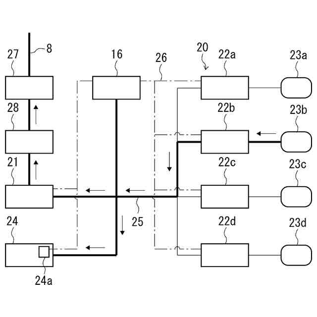 電動モータの回生駆動時の動力システムでの電力の流れを例示する説明図である。