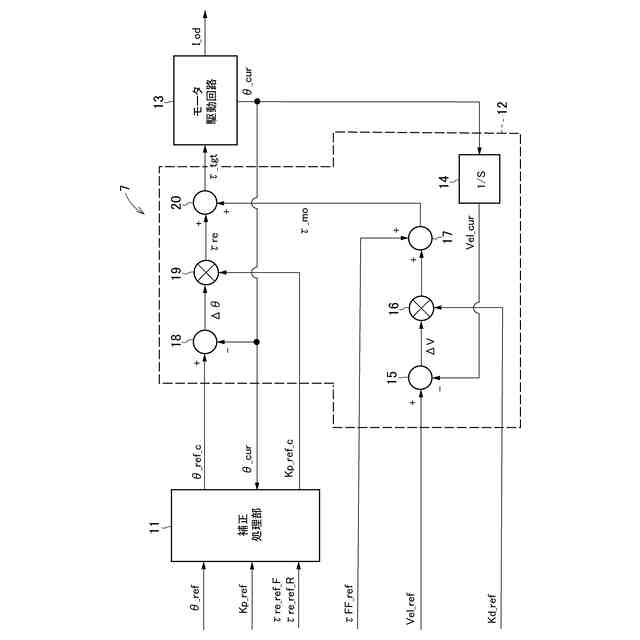 特許文献1に記載されたようにインピーダンス制御によってアクチュエータのトルクを制御する場合に、関節部の位置精度を向上させるためには、仮想バネ定数を大きく設定することになる。一方、ロボットの本体部から突出したアームなどの移動部には、その移動部を目標位置に制御するためにアクチュエータからトルクが作用するものの、移動部が何らかの物体に接触すると、その移動部の目標位置と現在位置との偏差が大きくなり、その結果、仮想バネ定数と上記偏差とを乗算して求められるばね荷重成分が大きくなる。そのため、関節部に作用する反力や、移動部が接触した対象物に作用する荷重が大きくなる可能性がある。特に、移動部の動作中に、その動作方向の対象物に接触した場合には、移動部を動作させるための荷重に、ばね荷重成分が付加されることになるため、関節部に作用する反力や、対象物に作用する荷重がより一層大きくなる可能性がある。