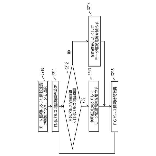 通常は、同一箇所に実装されるモータは同じ仕様だが、例えば製造中止等で異なる仕様のモータが混在することがある。実装されるモータの仕様が複数混在する場合に、一般的には、どのモータが実装されているか識別できる情報を、不揮発性メモリ等に保存しておいて、その情報に基づいて目標パルス間隔時間等のパラメータを切り替えて制御する方法が考えられる。